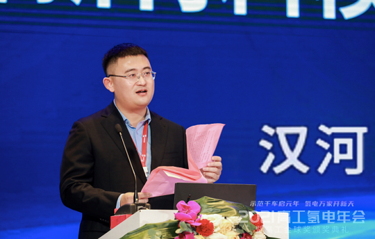 发布会伊始,青岛汉河集团董事长张大伟致辞:“今天我们从四面八方聚集在这里,目的是为了要更好的发展氢能产业,产业链上下游企业强强联合、优势互补、通力合作、互相学习、协同发展,中国企业才能真正做到‘示范千车启元年 氢电万家开新天’”。